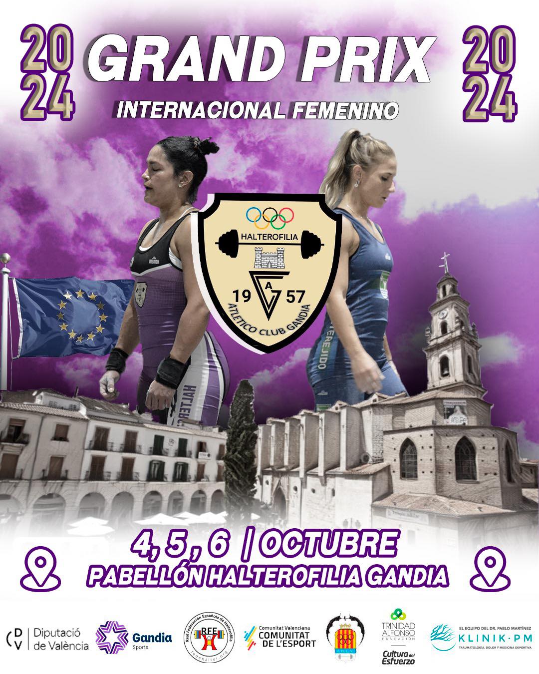 El Grand Prix Internacional Femenino de Halterofilia Gandia 2024 tendrá lugar del 4 al 6 de Octubre en el Pabellón de Halterofilia de Gandia.
